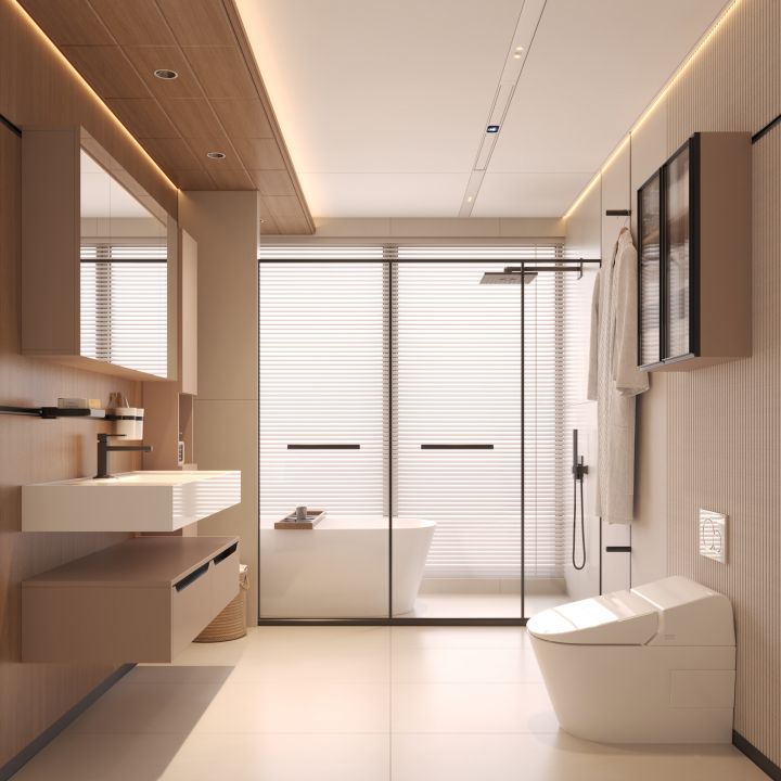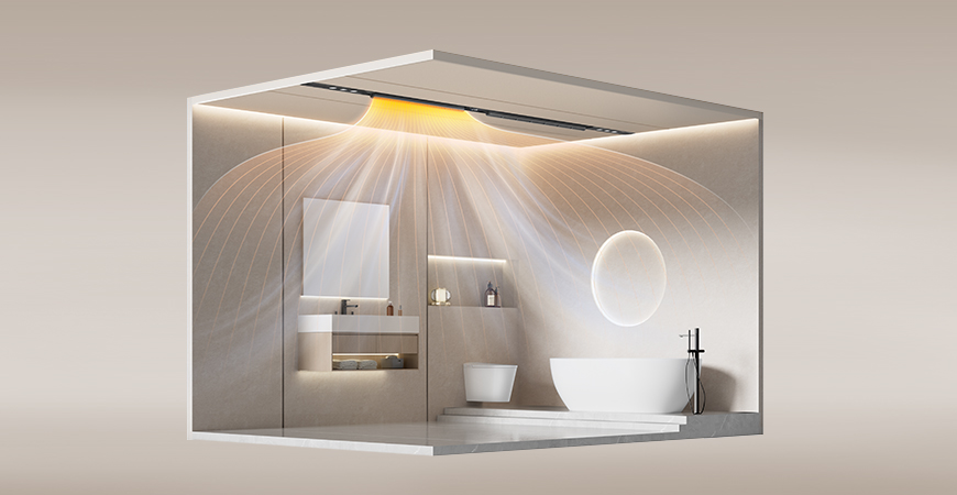內(nèi)置VOCs空氣質(zhì)量檢測系統(tǒng),24小時巡航檢測空氣質(zhì)量,若空氣質(zhì)量降低會自動開啟換氣,衛(wèi)浴空氣持久清新。
