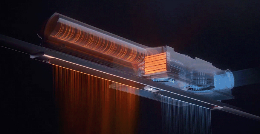 采用專利等壓射流風(fēng)道,暖風(fēng)經(jīng)一體式風(fēng)道均勻混合后吹出,人感風(fēng)溫差小,從頭到腳都溫暖。