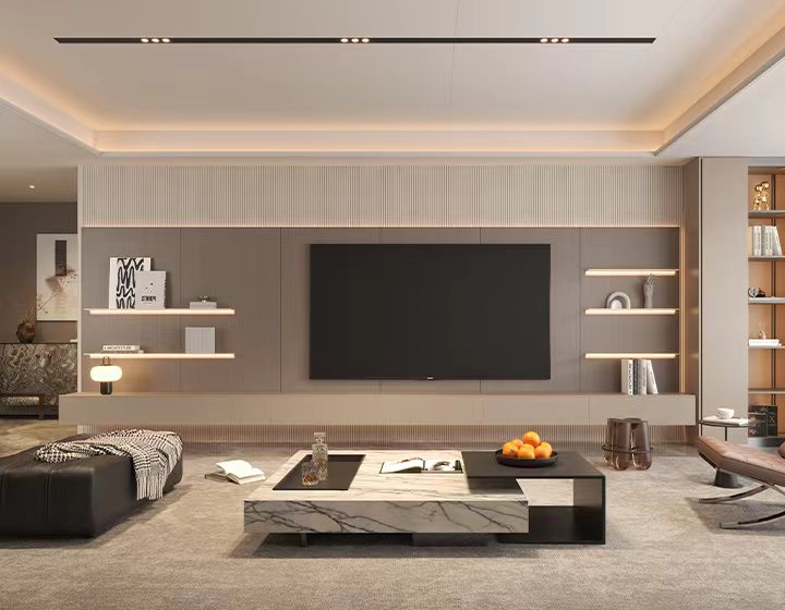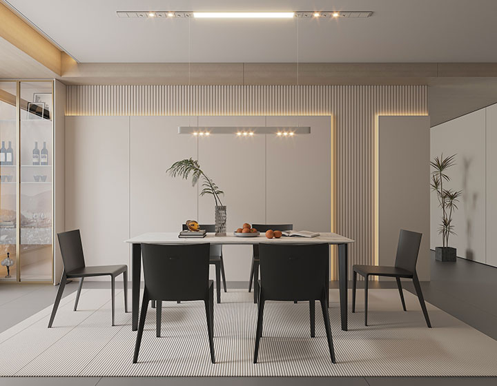 取消傳統(tǒng)燈槽型材依賴,運(yùn)用燈條直卡式安裝技術(shù),打造隱藏式光源,避免直射炫光與燈珠陰影。