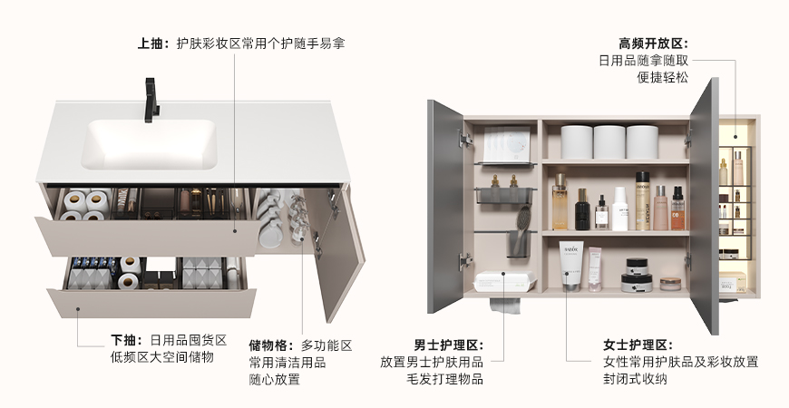 • 精細(xì)收納功能區(qū) 隨心定制